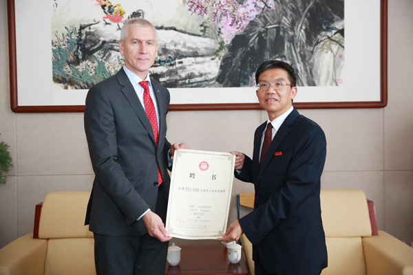 学校聘任阿列格为我校荣誉教授,李清彪向其颁发了聘书。