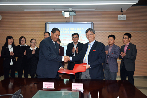 据悉,圣伊丽莎白大学于1899年成立,最早是一所四年制的女子大学,位于美国新泽西州,毗邻曼哈顿,交通便利,是一所具有本、硕、博学位授权的综合性高等院校。自1921年起获得美国六大区域联盟美国中部地区学历学位评鉴委员会的认证,同时也是我国教育部认可的大学。(文:国际合作处 黄昭信/图:刘金昆/编辑:陈振星)