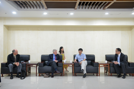 5月20日,美国托马斯大学董事长John Glenn、校长Gary Bonvillian、托马斯大学中国总校区校长Joseph R. K. Hwang及国际学院院长Sandi Smith率代表团来我校交流访问,校长苏文金会见了到访客人。