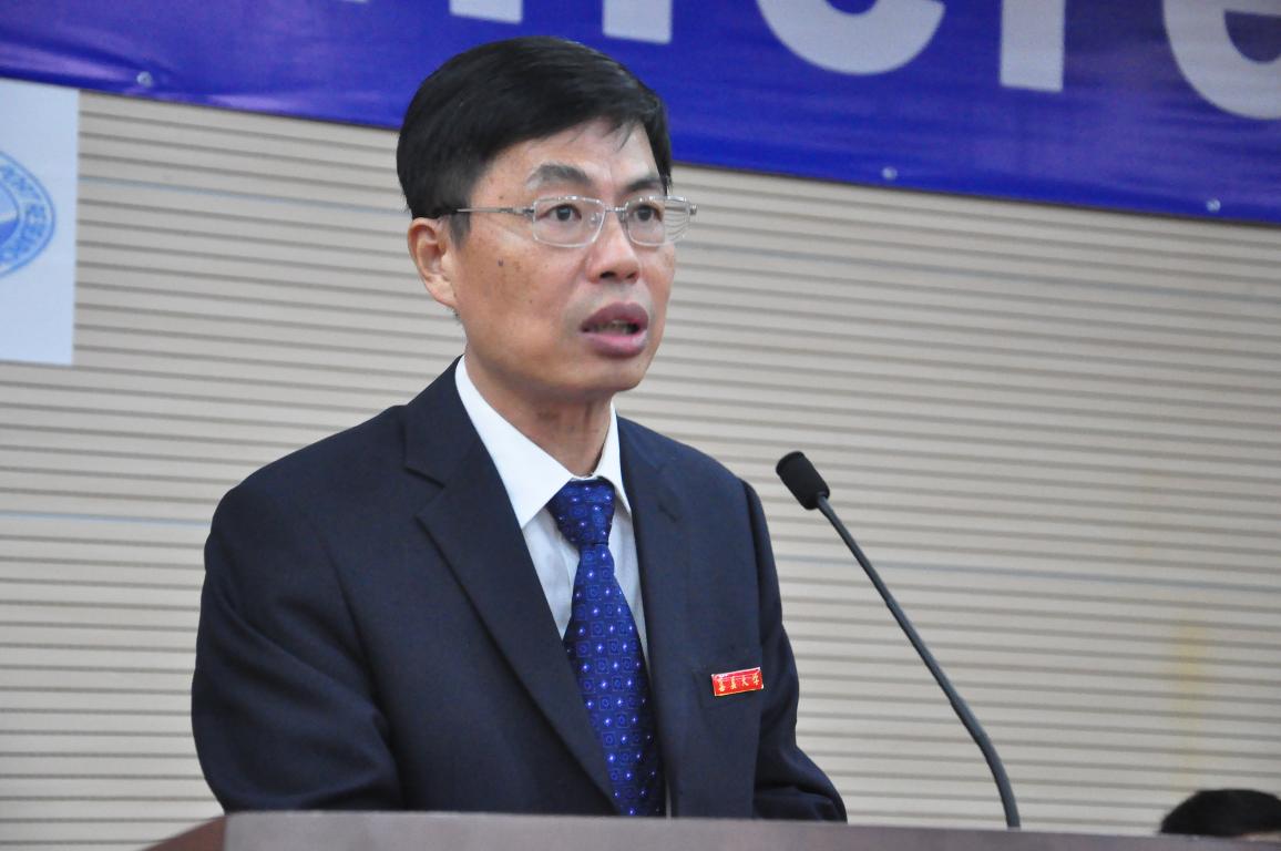 苏文金代表学校致词,简要介绍学校的情况和我校航海教育历史、优势和特色,希望与会嘉宾和代表对我校进一步改进航运人才的培养提出宝贵的意见和建议。