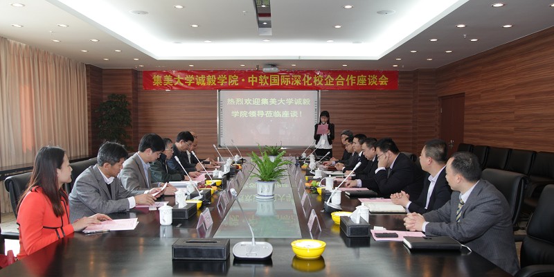 2月27日下午,诚毅学院•中软国际深化校企合作座谈会在厦门软件园二期中软国际厦门ETC召开,双方就加深双边合作关系、提升校企合作层次展开磋商交流。诚毅学院副董事长辜建德、院长叶光煌、副院长黄义新,信息工程系主任洪联系、党总支书记吴余舟,管理系主任郭士正,对外交流合作部主任助理关晶参加座谈会。中软国际高级副总裁、教育科技有限公司CEO唐振明,中软国际教育科技有限公司COO蒋唯游,专程从北京赶赴厦门参加座谈会。