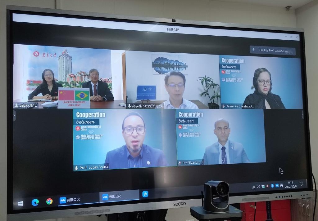 近日,我校与巴西马托格罗索联邦大学举行视频合作推进会议,巴西马托格罗索联邦大学校长埃万德罗•阿帕雷西多•苏亚雷斯•达席尔瓦教授、我校曹敏杰副校长出席会议,两校国际部门负责人参会。