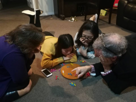 ▲ 和homestay一起玩跳棋 ▲ 在课堂上制作毛利poi